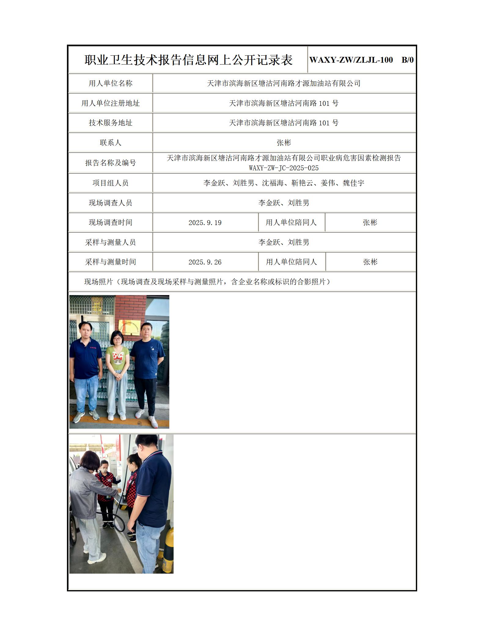 天津市滨海新区塘沽河南路才源加油站有限公司职业病危害因素检测报告信息公示表